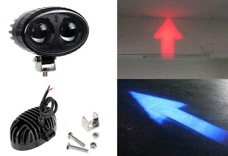 Le Blue Spot Flèche est identique au Blue spot classique, il est un élément de sécurité à part entière, mais cette fois-ci, il projette une flèche de direction au sol. Très pratique sur tous types d'engins, pour indiquer le sens de marche. Il est utilisé par la majorité des grandes sociétés, comme Fenwick, Colas, Eurovia, Jungheinrich...