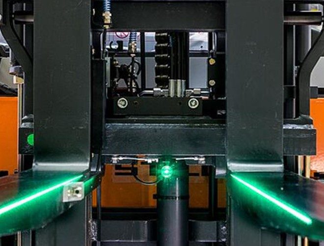 Le Guide Laser pour Chariot Élévateur est équipé d'un faisceau laser réglable qui se projette devant les fourches du chariot élévateur indiquant la position exacte de celles-ci. Ce dispositif réduit considérablement les risques d'endommagement des marchandises stockées sur des palettes en aidant les conducteurs de chariot élévateur à se guider. Le guide laser s'aligne avec la fourche et s'aligne sur la palette devant le chariot élévateur, en projetant une ligne de guidage montrant au conducteur du chariot élévateur la position exact de ses fourches. Compatible FEM 2 et 3.