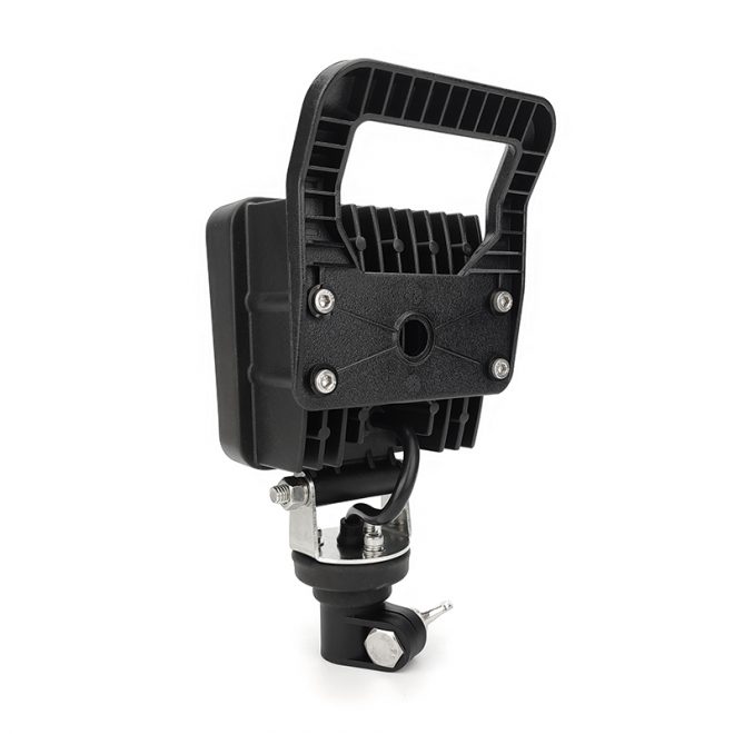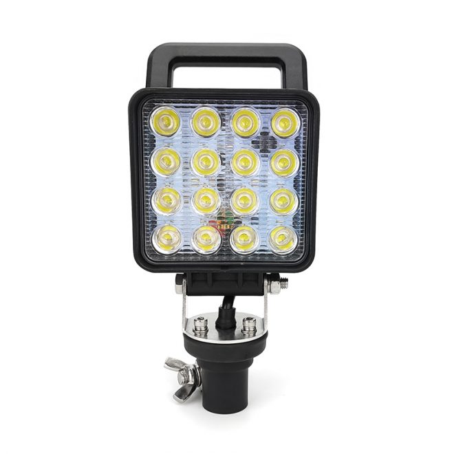 Phare de travail 48W à LED, muni d'une prise rapide, identique à celle des gyrophares, afin de le démonter à chaque fin de journée. Sa puissance lui permet d'éclairer aisément la surface de travail. Il est aussi très robuste grâce à sa coque en aluminium et sa grande qualité de LED. Fonctionne en 10-36VDC