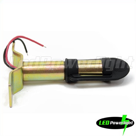 Un support de gyrophare droit, muni d'une patte de fixation, permettant de se viser grâce aux deux trous sur les extrémités, ainsi qu'une prise incorporée et son capuchon de protection.